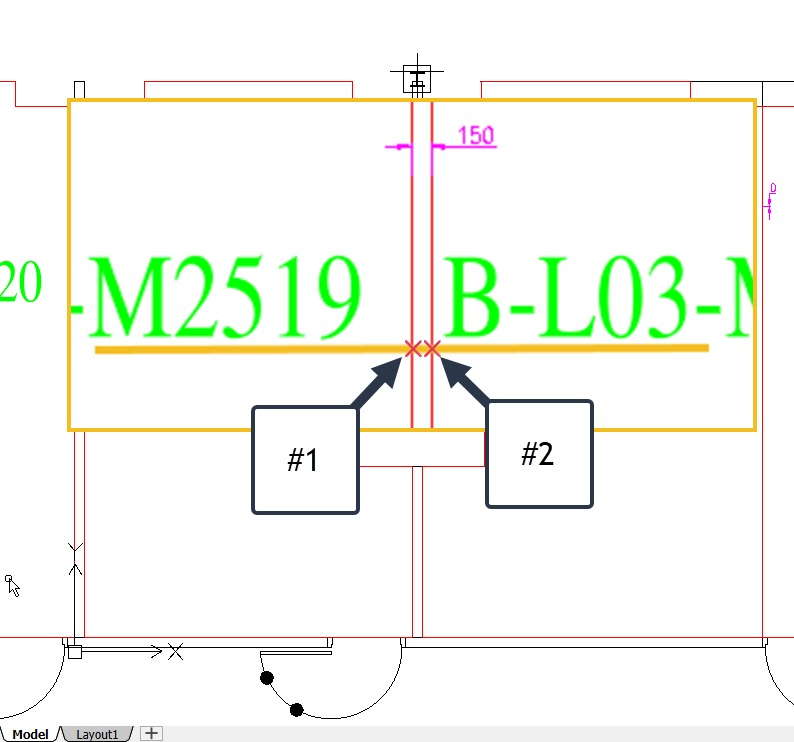 How is this calculated? Essentially, we draw a line from a point within Space #1 to a point within Space #2. We typically use the anchor point of the Room IDs as the endpoints of the line, but this can be changed. The points where that line crosses the Room Boundary of each space are calculated, and if the distance between those points of intersection is less than the tolerance described above, then the spaces are adjacent.