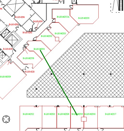 Walking distance is the distance it would take to walk in a usual manner from one point to another. It may navigate around corners, cross intersections, and utilize doors to exit rooms. In other words, it will measure the distance a typical person would need to travel from Point A to Point B. Usually, there will be multiple paths that could be followed, and CADViewer AutoXChange will compute the shortest distance from those alternatives.