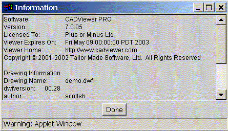 If you have opened a drawing in the CADViewer, you can view any pertinent information about this drawing, as provided by the drawing's creator/publisher. To do so, follow these steps: